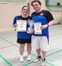 Die Ergebnisse sind dabei beeindruckend. Anja und Kevin erreichten im Gemischten Doppel den 3. Platz. Dass diese Platzierung hart erkämpft war, beweist das Spiel gegen den späteren 4. Platzierten, das Anja und Kevin mit 22:20 und 25:23 für sich entscheiden konnten. Herzlichen Glückwunsch zum Platz auf dem Treppchen.