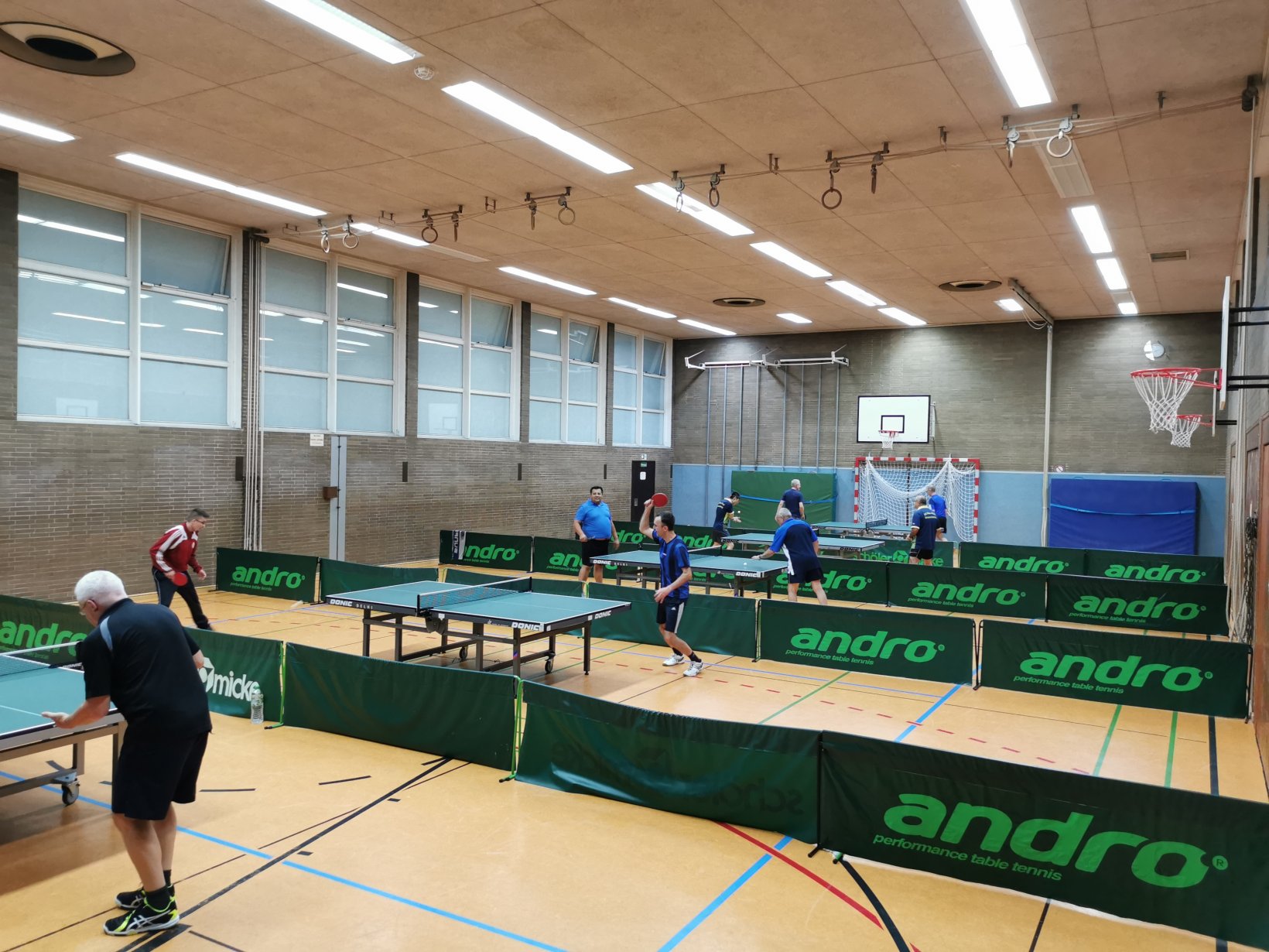 Hurra, seit dem 28.08. findet das Training unter den Corona-Hygiene-Regeln wieder in unserer Sporthalle statt. Wir können aufgrund der Platzverhältnisse in der Sporthalle 5 Tische in den vorgeschriebenen Spielboxen 5 x 10m aufstellen. Das klappt bisher ganz gut, da man sich untereinander immer abwechseln kann, so dass sich keiner auf der Bank langweilen muss.